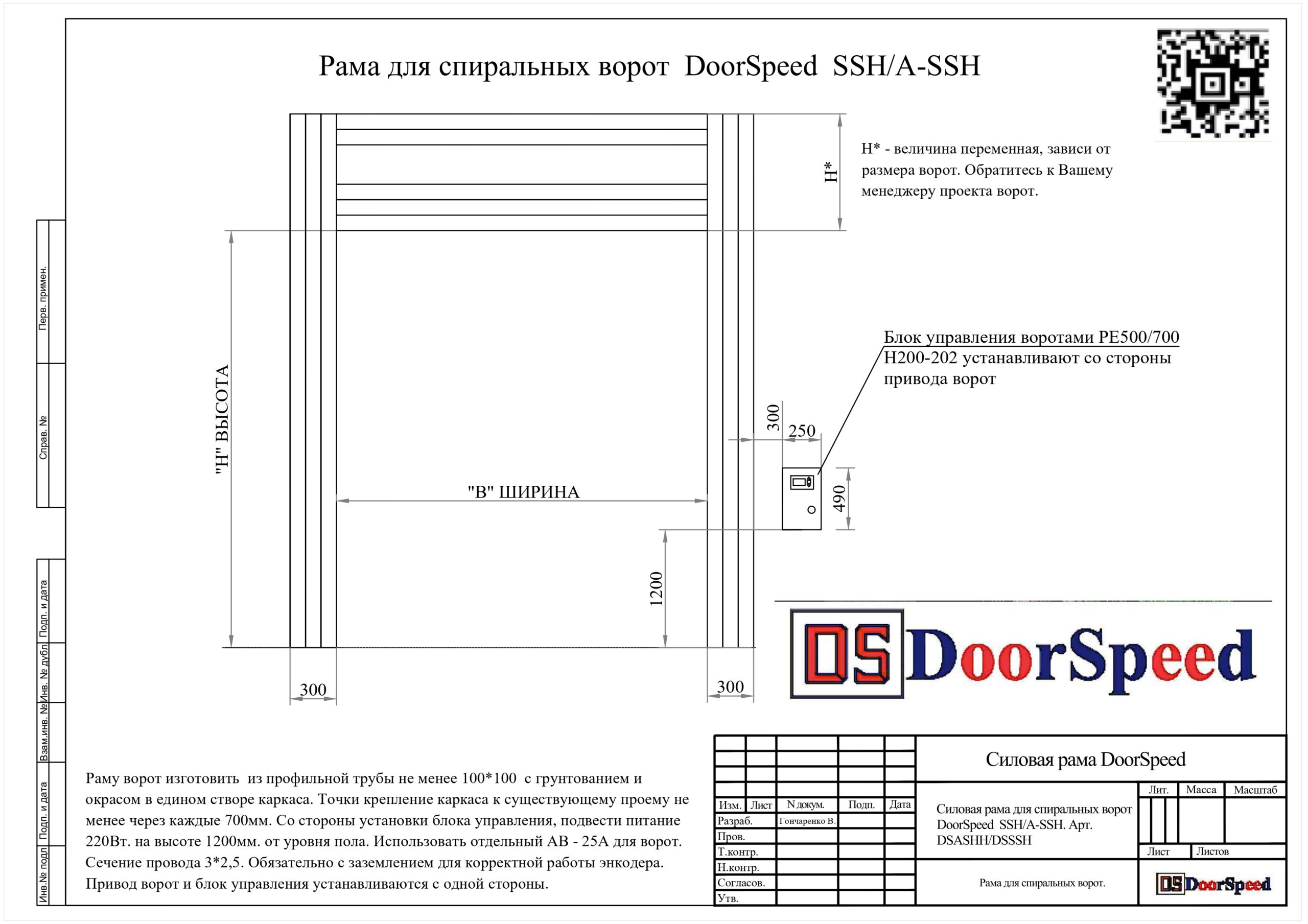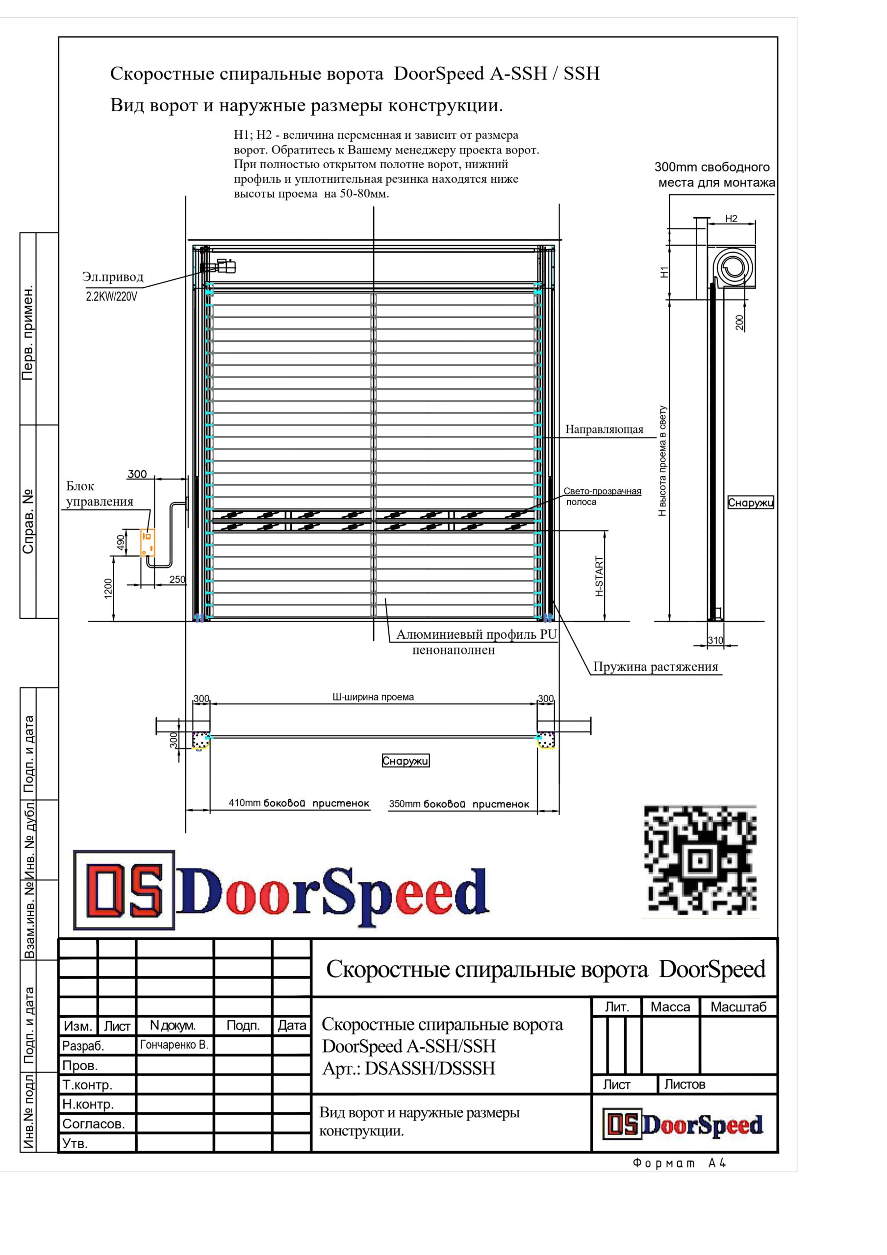 ЧЕРТЕЖИ СКОРОСТНЫХ СПИРАЛЬНЫХ ВОРОТ DOORSPEED A-SSH / SSH